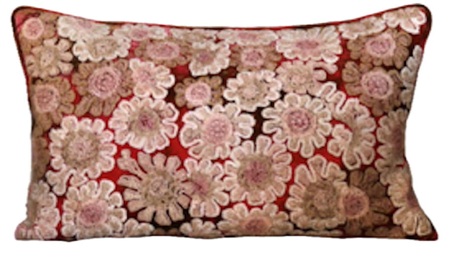 Anke Drechsel’s silk velvet pillows stand out due to their lush colors. Her master craftsmen use both fine hand embroidery and small hand-guided machines to achieve her intricate and visually stunning designs. Perfect for layering on Sofas or bed. Insert not included. Measures 12×20 inches. Made of 100% silk velvet.
