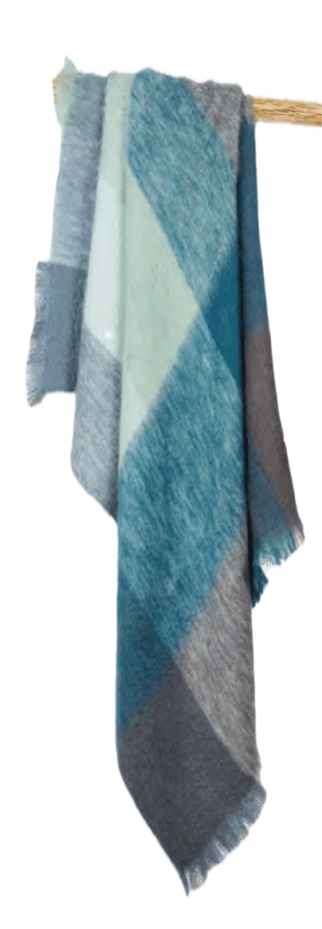 Multiple of beautiful color mohair throw from Ezcaray Mantas is made of 73% mohair and 27% wool. measures 51×79 inches. Made in Spain. Dry clean only.