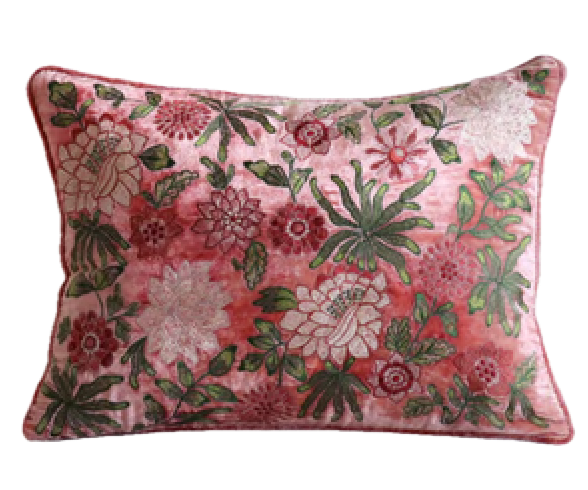 Anke Drechsel’s silk velvet pillows stand out due to their lush colors. Her master craftsmen use both fine hand embroidery and small hand-guided machines to achieve her intricate and visually stunning designs. Perfect for layering on Sofas or bed. Insert not included. Measures 12×16 inches. Made of 100% silk velvet.