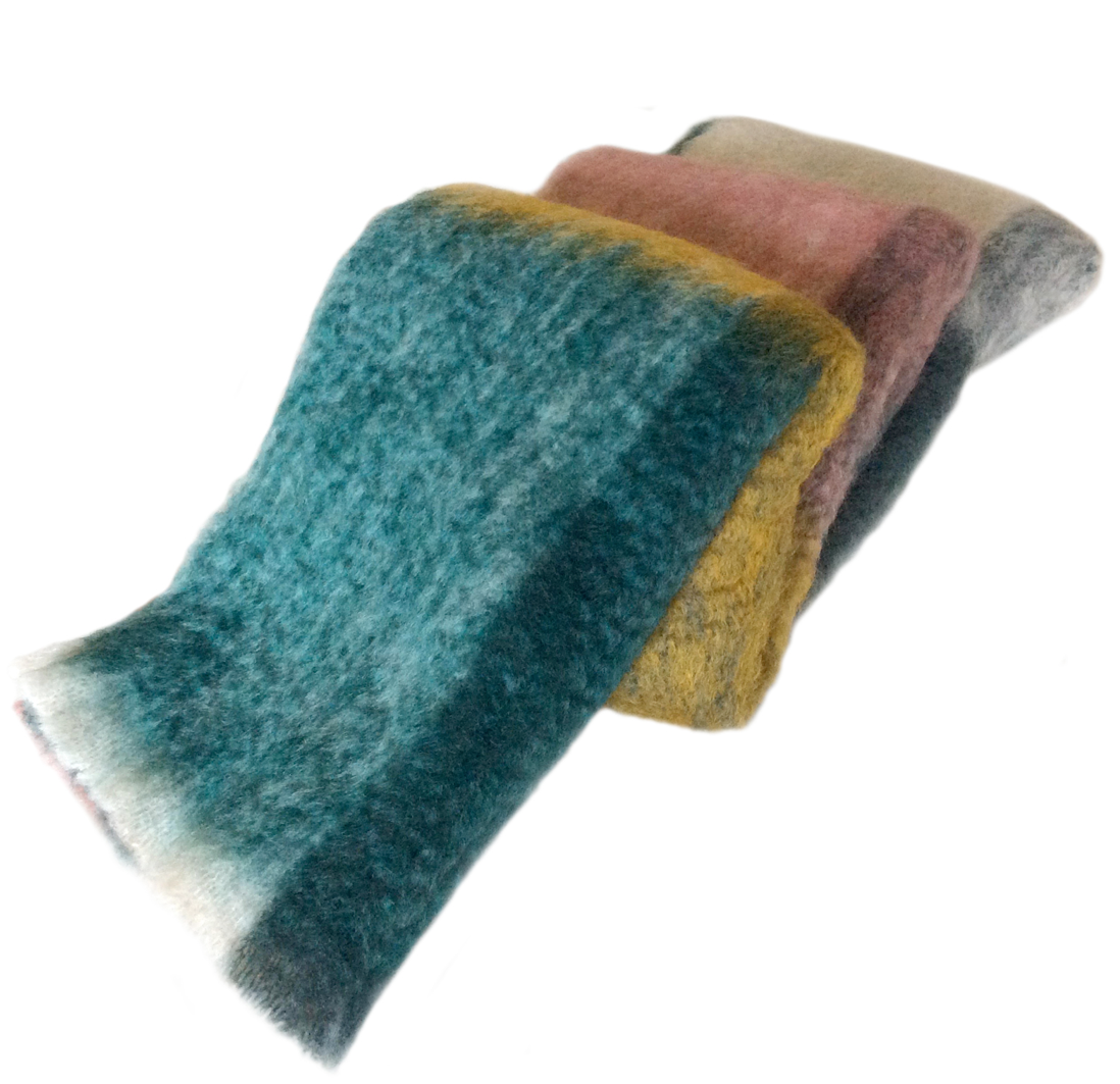 The mohair is the hair of the Angora goat, considered one of the most luxurious natural fibers in the world. Its qualities of whiteness, shine and silkiness allow to obtain a vivid and lasting color. These Mohair throws are characterized by their lightness and warmth.