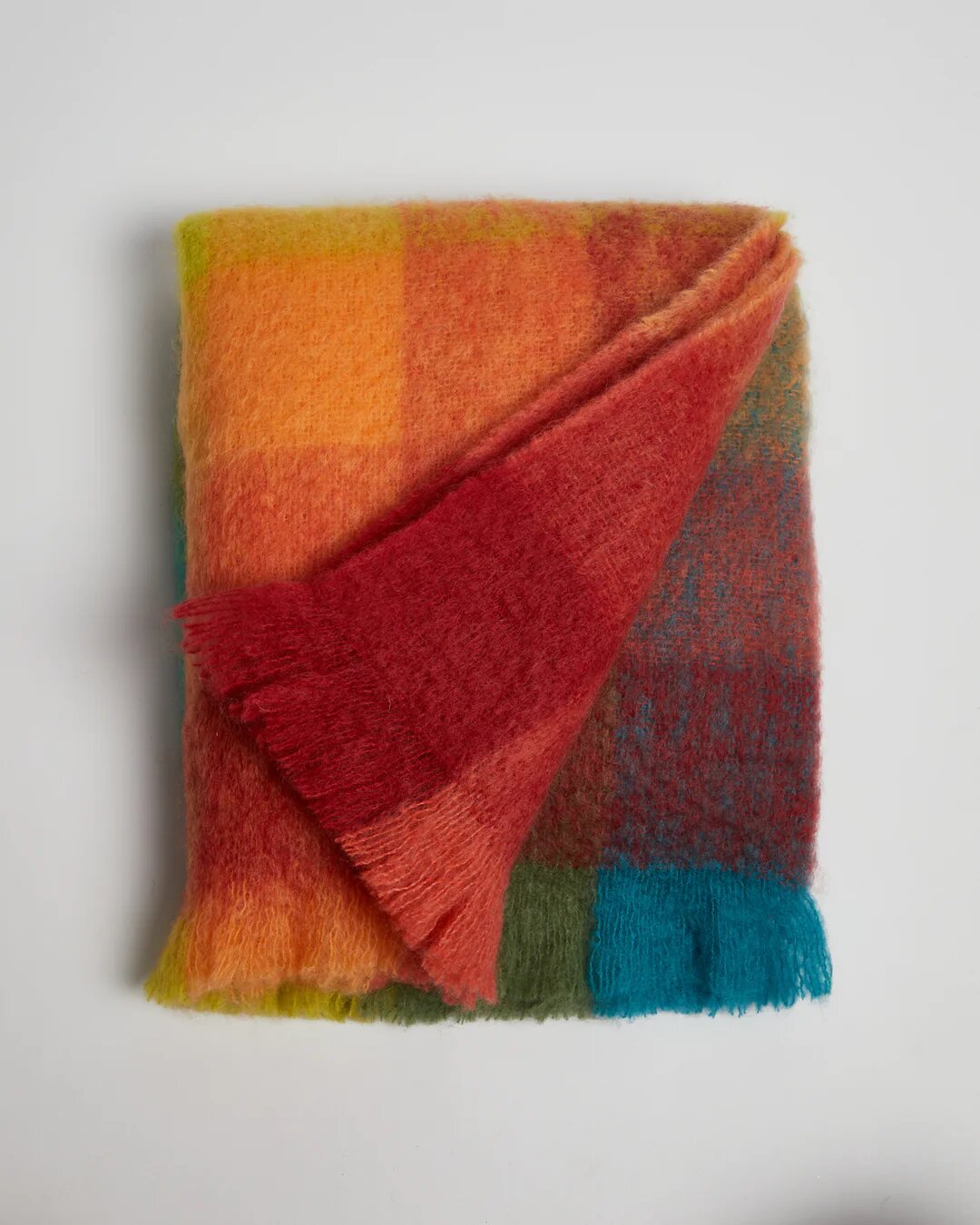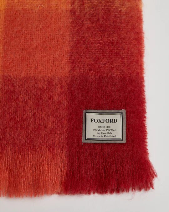 Designed and crafted in-house at FOXFORD, mohair throws are a fluffier alternative to pure lambswool. The Cottage Throw is woven in a contemporary color-block print and finished with a traditional roll fringe – the perfect way to add a touch of color to any room.