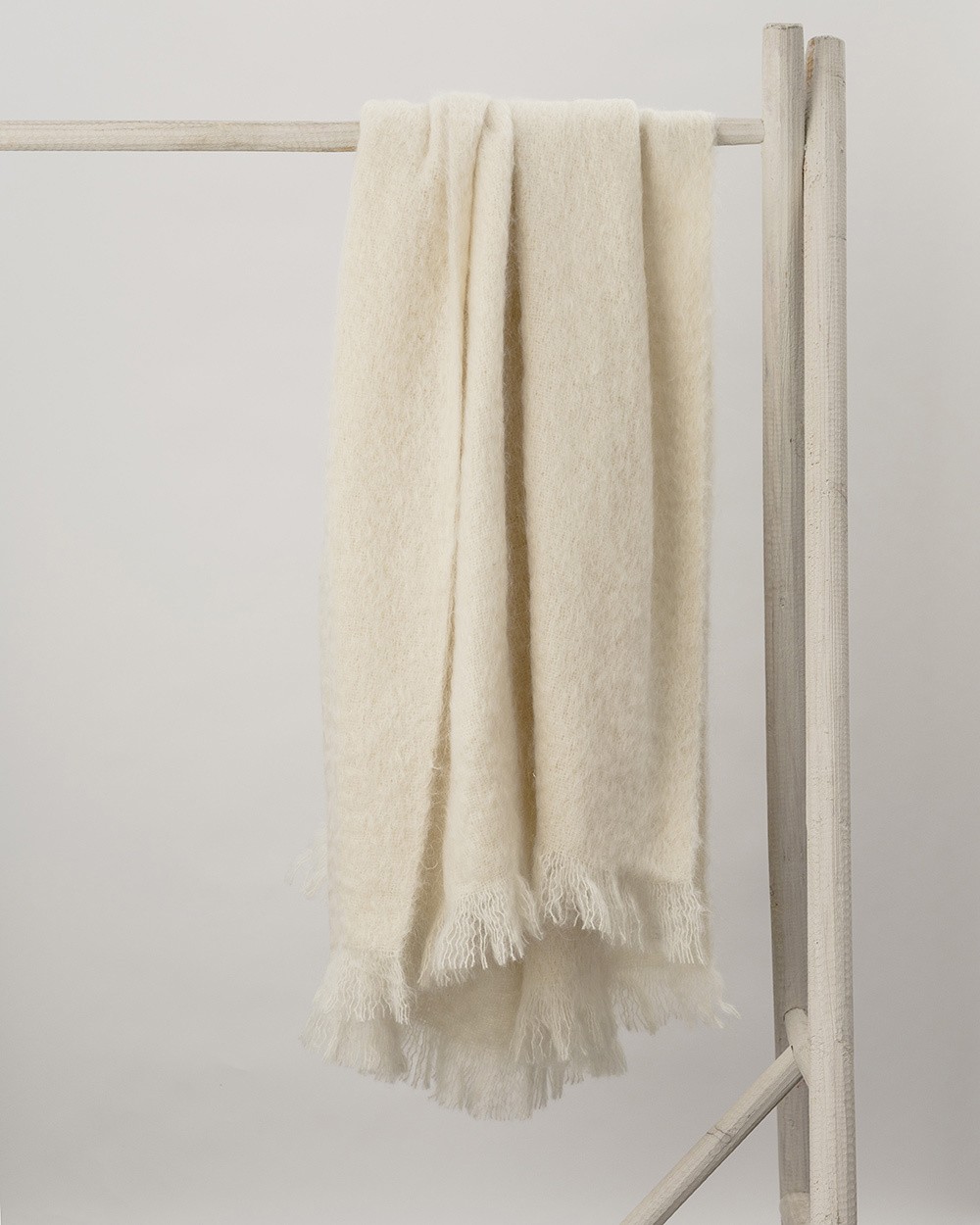 A wonderfully subtle throw that goes with everything, our cream mohair throw promises to add opulence and style to any interior. Measures 56×72 inches. Made of 70% Mohair and 30% Pure Wool. Made in Ireland.