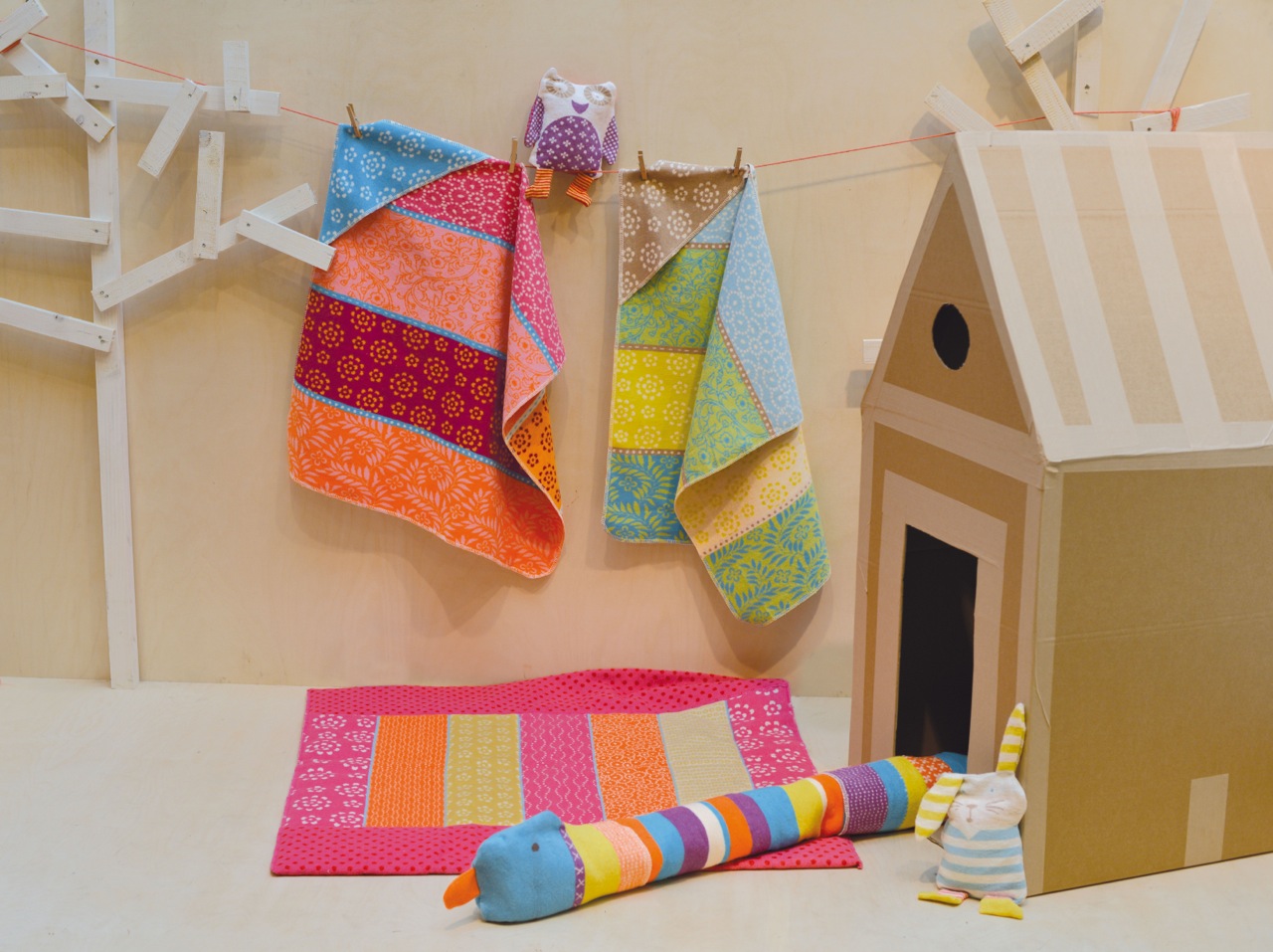 Hooded Receiving Blanket. Made of 95% Cotton 5% Viscose. Measures 32″x32″. Available in two colors, Pink/Orange and Blue/Green
