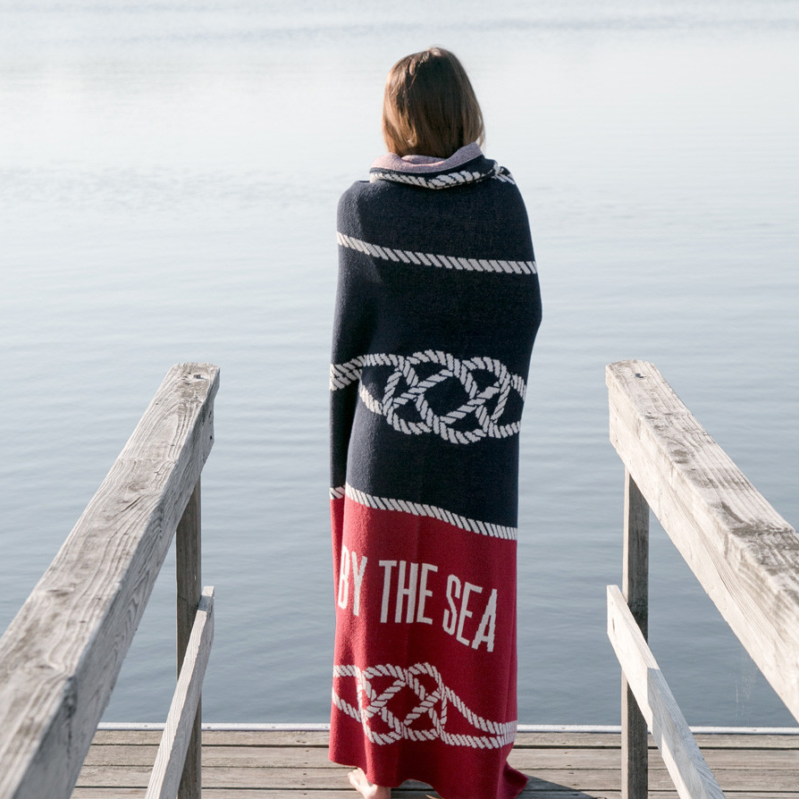 Cuddle up seaside with this Eco By the Sea Throw. This interwoven knot design will add a touch of nautical flair to your home, or make a perfect gift for a seafaring friend. Made of 75% recycled cotton and 25% polyester (also mostly recycled). Made in USA.
