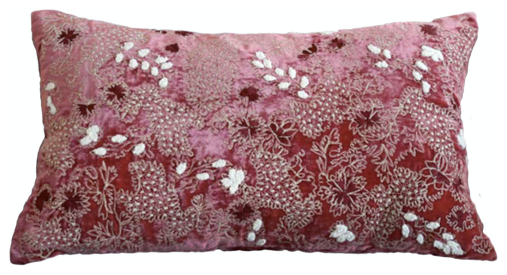 Anke Drechsel’s silk velvet pillows stand out due to their lush materials, colors and patterns. Her master craftsman use both fine hand embroidery and small hand guided machines to achieve her intricate and visually stunning designs. Measures 12×20. Insert not included.
