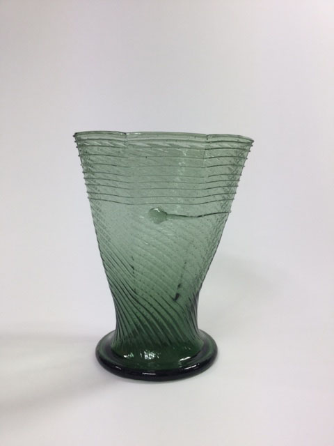Green glass cup , hand blown in Czech Republic