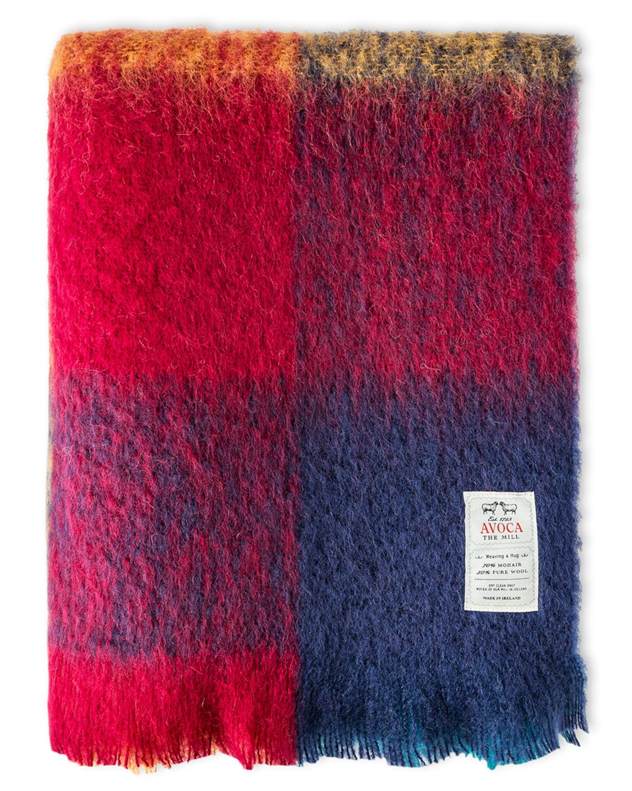 Proving to be a strong favorite in lambswool, now the gorgeous Harriet throw is also available in light and lofty mohair. Featuring the same bold blocks of color in deep shades of amber and navy, this cozy throw promises to bring warmth and style to any home.