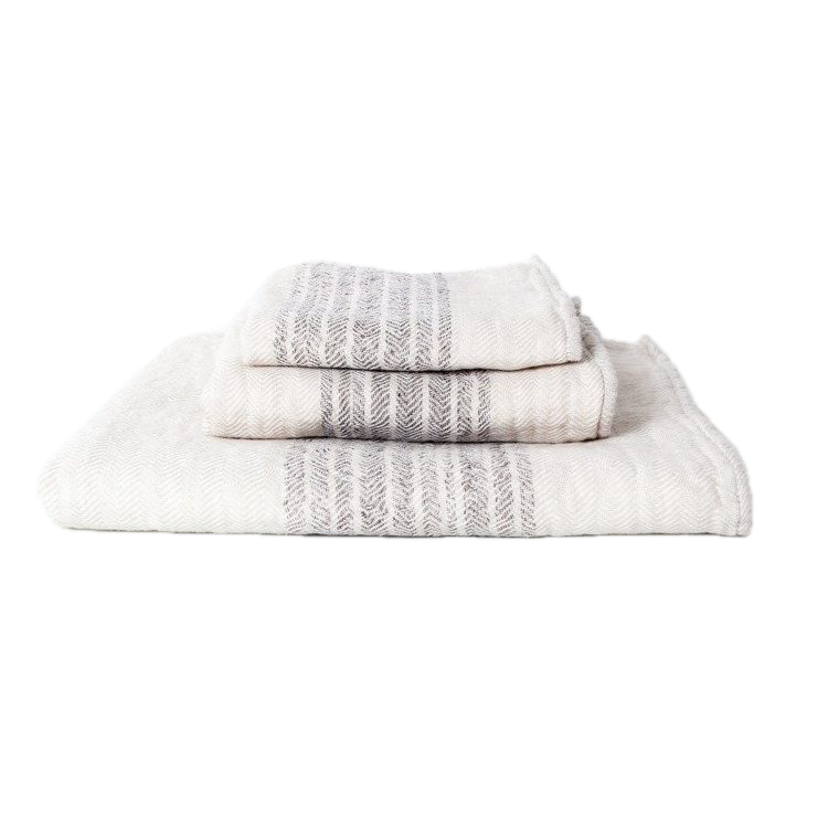 The Flax Line Organics series have a delicate chevron pattern with a striped border on one end. Each towel has two sides: an ultra-soft cotton weave and a looped cotton terrycloth pile. The exceptional design and care in processing the cotton make the Flax Line towels highly absorbent, lightweight, fast-drying and environmentally friendly. Made in Imabari, Japan by Morihata.100% organic cotton.