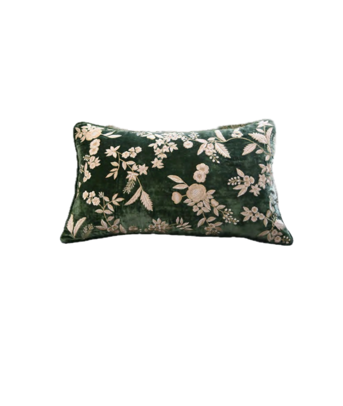 Anke Drechsel’s silk velvet pillows stand out due to their lush colors. Her master craftsmen use both fine hand embroidery and small hand-guided machines to achieve her intricate and visually stunning designs. Perfect for layering on Sofas or bed. Insert not included. Measures 12×20 inches. Made of 100% silk velvet.