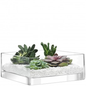 A handmade container with a heavy base and thick walls, inspired by architectural structures. The minimal silhouette is versatile for serving food or for the display of an open terrarium. Measures 9.75×9.75×4 inches. Hand made in Poland.