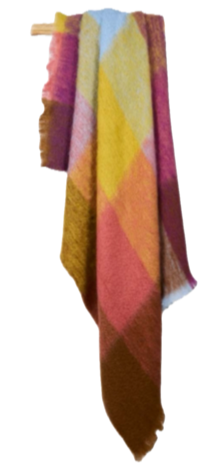 Multiple of beautiful color mohair throw from Ezcaray Mantas is made of 73% mohair and 27% wool. measures 51×79 inches. Made in Spain. Dry clean only.