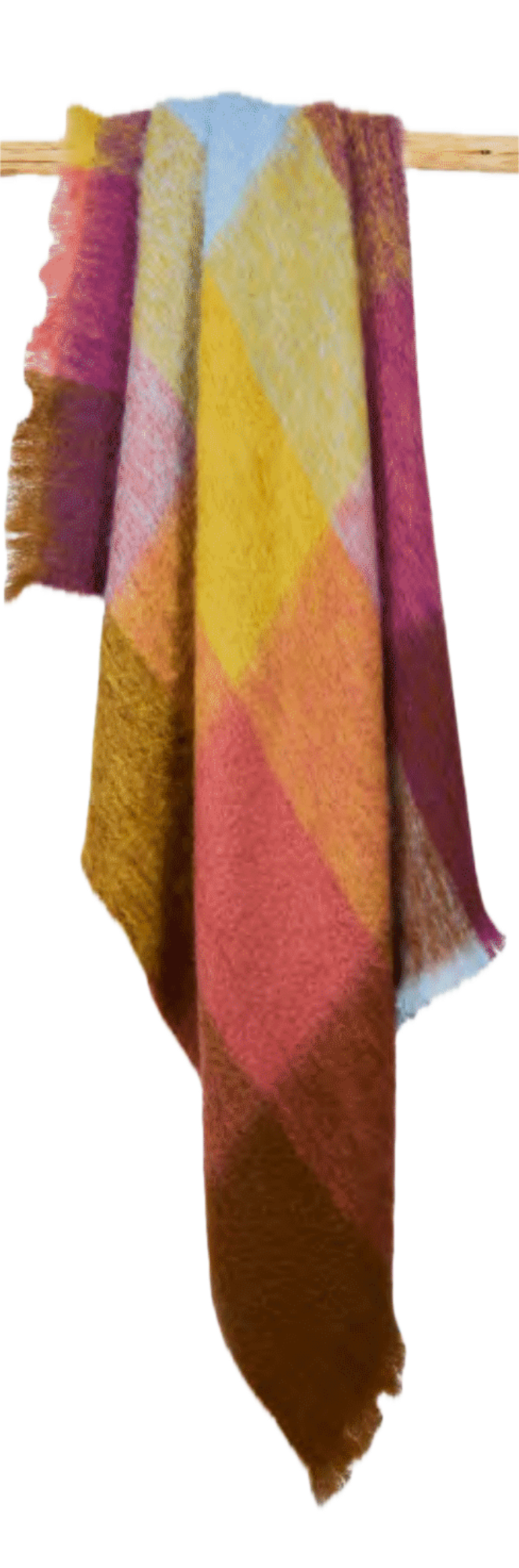Multiple of beautiful color mohair throw from Ezcaray Mantas is made of 73% mohair and 27% wool. measures 51×79 inches. Made in Spain. Dry clean only.