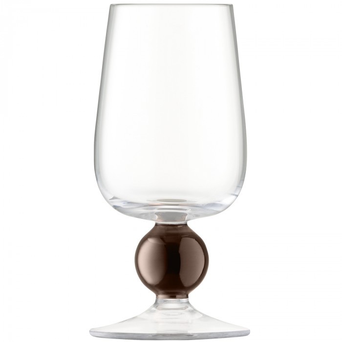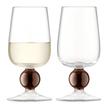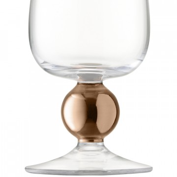 The distinctive spherical stems and Baroque-inspired silhouettes add opulence to these mouth blown wine glasses, ideal for special occasion dining and entertaining. Hand painted with copper, each set is gift-boxed in pairs. Measure 6.1×3 inches. Made in Poland.