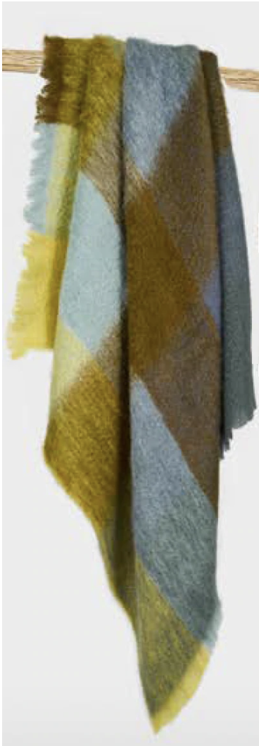The mohair is the hair of the Angora goat, considered one of the most luxurious natural fibers in the world. Its qualities of whiteness, shine and silkiness allow to obtain a vivid and lasting color. These Mohair throws are characterized by their lightness and warmth. Measures 51×79 inches. Made in Spain.