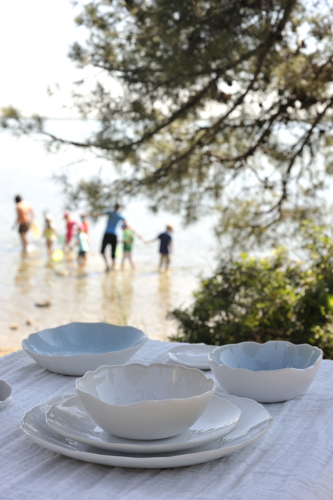 Jars Ceramics are handcrafted in South of France with environmentally friendly products. They are chip resistant, as durable as porcelain (fired at 2340 F), Non-porous and will not stain. Microwave and dishwasher safe.