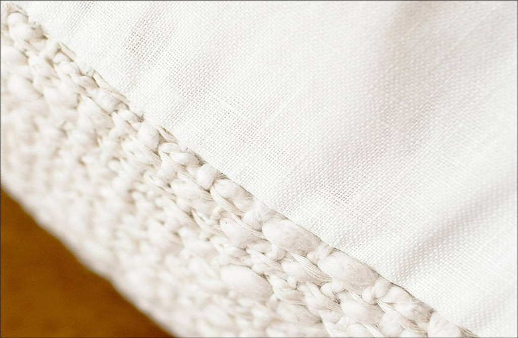 Rustic Cotton Pillow’ is a fluffy & richly textured cable cotton decorative pillow. Almost a ‘must’ piece for any interior designer, if wants to decor any residential project as a trendy & chic home. Volumes of fluffy rustic cotton yarn have been loosely hand woven together into a chunky cable decorative pillow. Backed with natural white linen and finished with a hidden zipper closure. Handwoven in Argentina